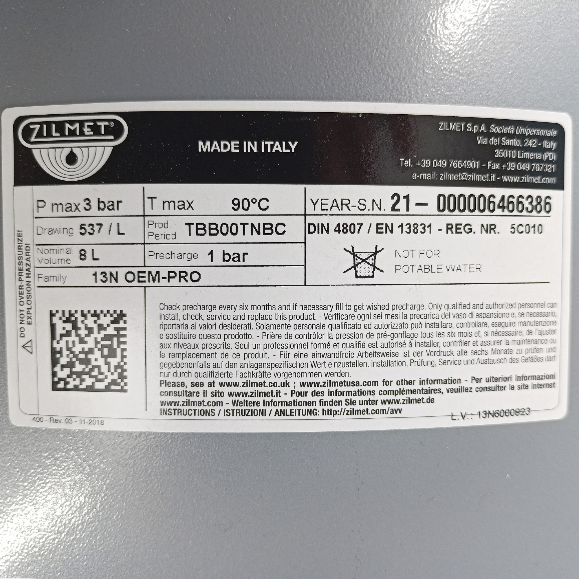 Расширительный бак 8л резьба 3/8" с крепежом (для Ferroili) Zilmet Италия